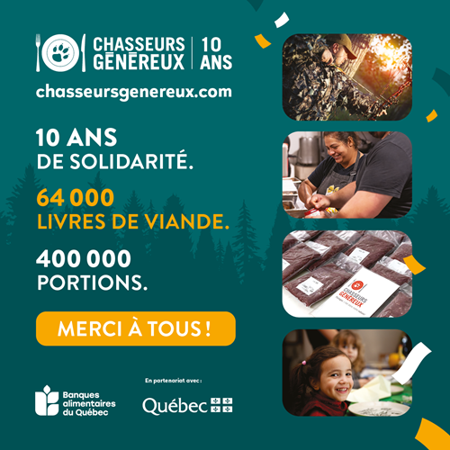 Merci aux chasseurs et bouchers généreux qui, année après année, contribuent à chasser la faim au Québec !